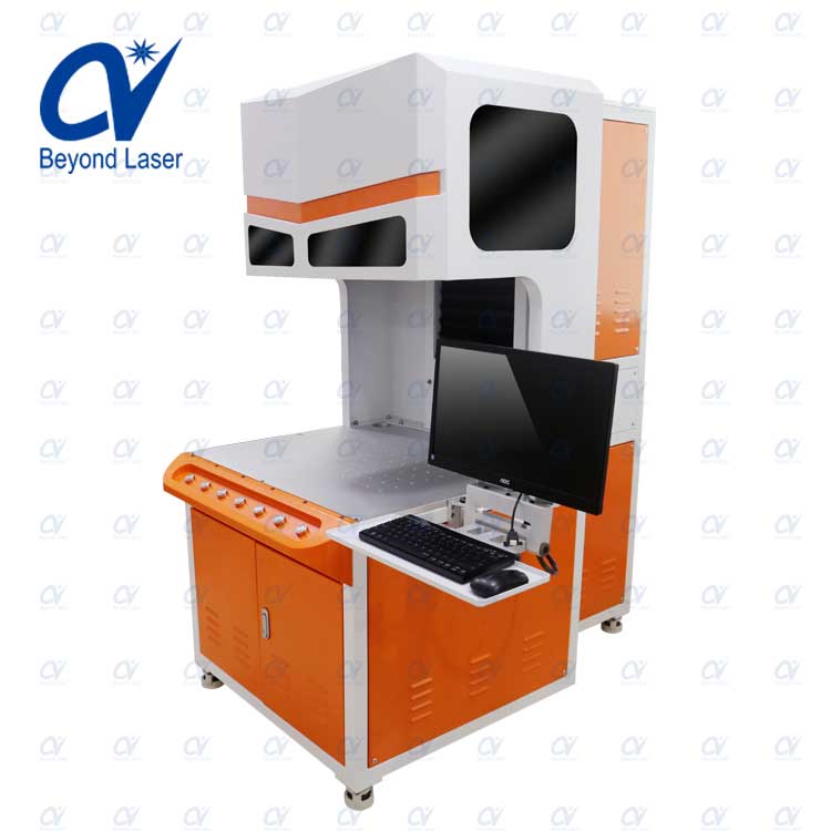 , 行成激光束。通过电脑控制振镜改变激光束光路实现自动打标。 此款核心部件配置全部为原装进口,如